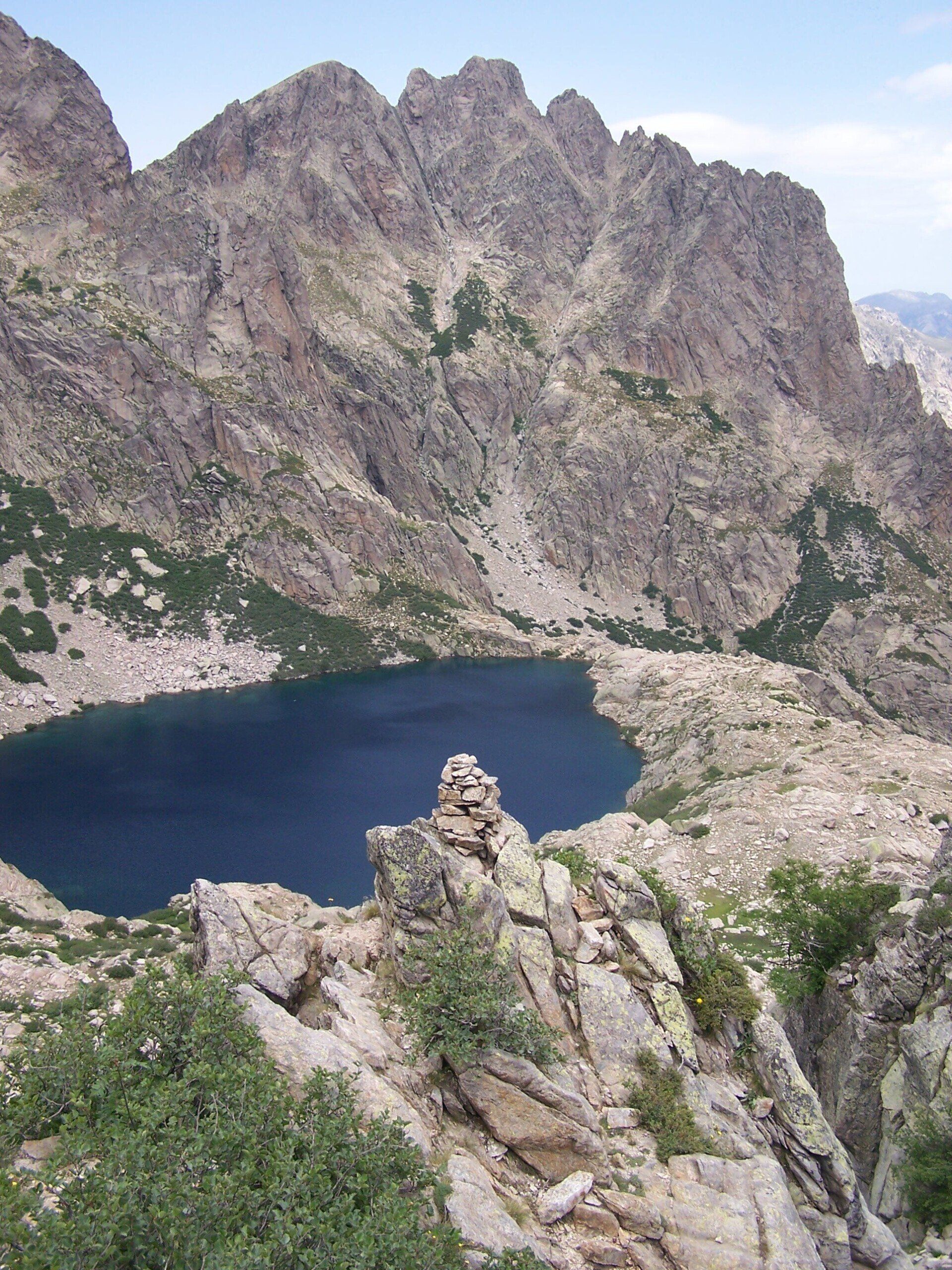 Elle s'élève jusqu'à 2 709 m au MONTE CINTO, et la chaine centrale traverse en oblique l'ile, qui permet la division entre Haute Corse et Corse du Sud; Le relief est extrèmement découpé de par la proximité de la mer et la dénivellation que doit parcourir les torrents pour rejoindre la mer. Chaque ville a sa région de montagne de proximité, mais la partie la plus emblématique et la plus alpestre sont les vallons de la RESTONICA avec ses lacs d'altitude et ses forêts d'arbres géants au dessus de CORTE. Les paysages sont grandioses, mais les chemins souvent tortueux et avec des pentes et dénivellations sévères. C'est ce qui fait le charme du sentier GR 20 long de 200 km entre Calenzana (Calvi) et Conca (Porto Vecchio), difficile trek entre 7 (partie nord ou sud) et 14 jours de marche (intégrale) avec plus de 11 500 m de dénivelé avec étapes en refuge. Une aventure réservée aux randonneurs expérimentés et sportifs, mais il existe des versions encadrées et accompagnés plus "lights" ou on peut se contenter aussi d'une balade à la journée selon les points d'accès.