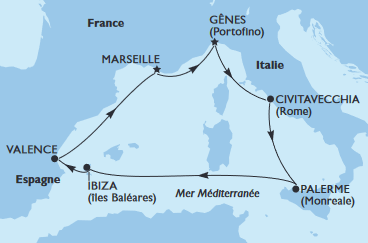 Exemple MSC SEASIDE à partir de 519 €* par personne au départ de Marseille, itinéraire ci dessous